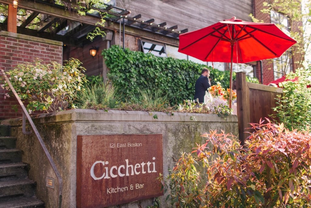 Cicchetti’s lovely garden patio is perfect for hosting a smaller wedding ceremony, or intimate, outdoor gathering. The brick façade and surrounding blossoms offer a tranquil, quiet outdoor event space with beautiful sunset views.